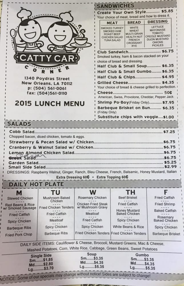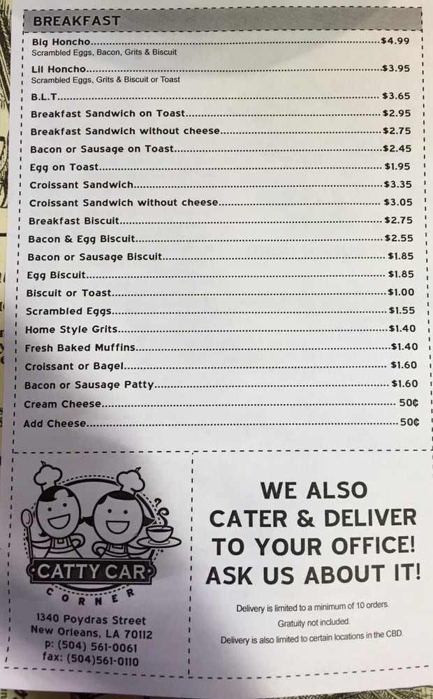 Welcome to Catty Car Corner, a hidden gem in New Orleans that offers a delightful taste of soul food. Nestled at 1340 Poydras St, this casual eatery is perfect for lunch breaks, group gatherings, or family outings. With a menu that boasts hearty options like Fried Catfish, BBQ Ribs, and unique breakfast sandwiches, Catty Car Corner has something for everyone, including vegan choices!